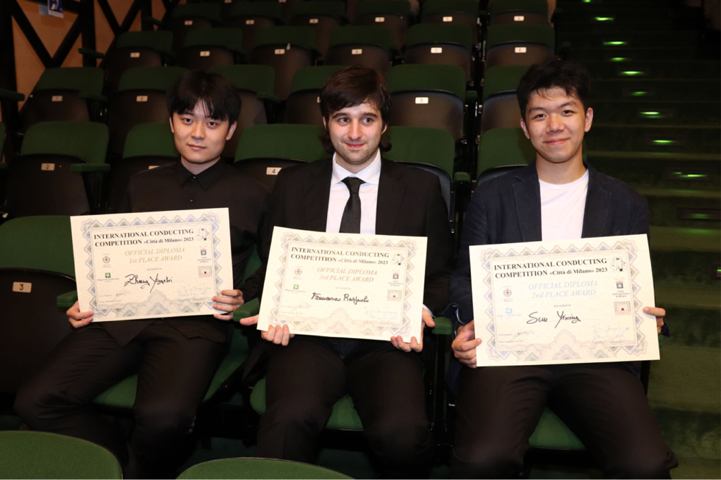 “International Conducting Competition<Città di Milano>2023”由意大利米兰市政府主办、意大利纳维利爱乐乐团承办。该比赛致力于为全世界指挥提供合作平台以展现乐团合作的能力,对参赛选手无年龄限制,以五轮赛制代替传统的三轮赛制,规定选手必须选用不同时期不同作曲家的交响曲和序曲体裁,如:贝多芬《第七交响曲》、门德尔松《赫布里底群岛序曲》、舒伯特《第五交响曲》、瓦格纳《齐格弗里德牧歌》等作品作为必选曲目,并在同一天内完成半决赛、决赛的晋级选拔,其难度要求巨大。获奖者将获得比赛官方提供的获奖证书、奖金以及在2024/2025年演出季与意大利Orchestra Filarmonica DEI Navigli,Symphony Orchestra”Hans Swarowsky”等乐团的合作机会,并可参与Puccini Festival Foundation,Biotonto Opera Festival 2024等艺术节的重要活动。大赛评委会成员包括德国著名指挥家、汉堡音乐学院与维也纳音乐学院教授Julius Kalmar;意大利著名指挥家、“The Grzegorz Fitelberg International Competition for Conductors”获奖者Massimiliano Caldi;以及首尔国立大学教授、歌剧制作人Carlo Antonio de Lucia等。