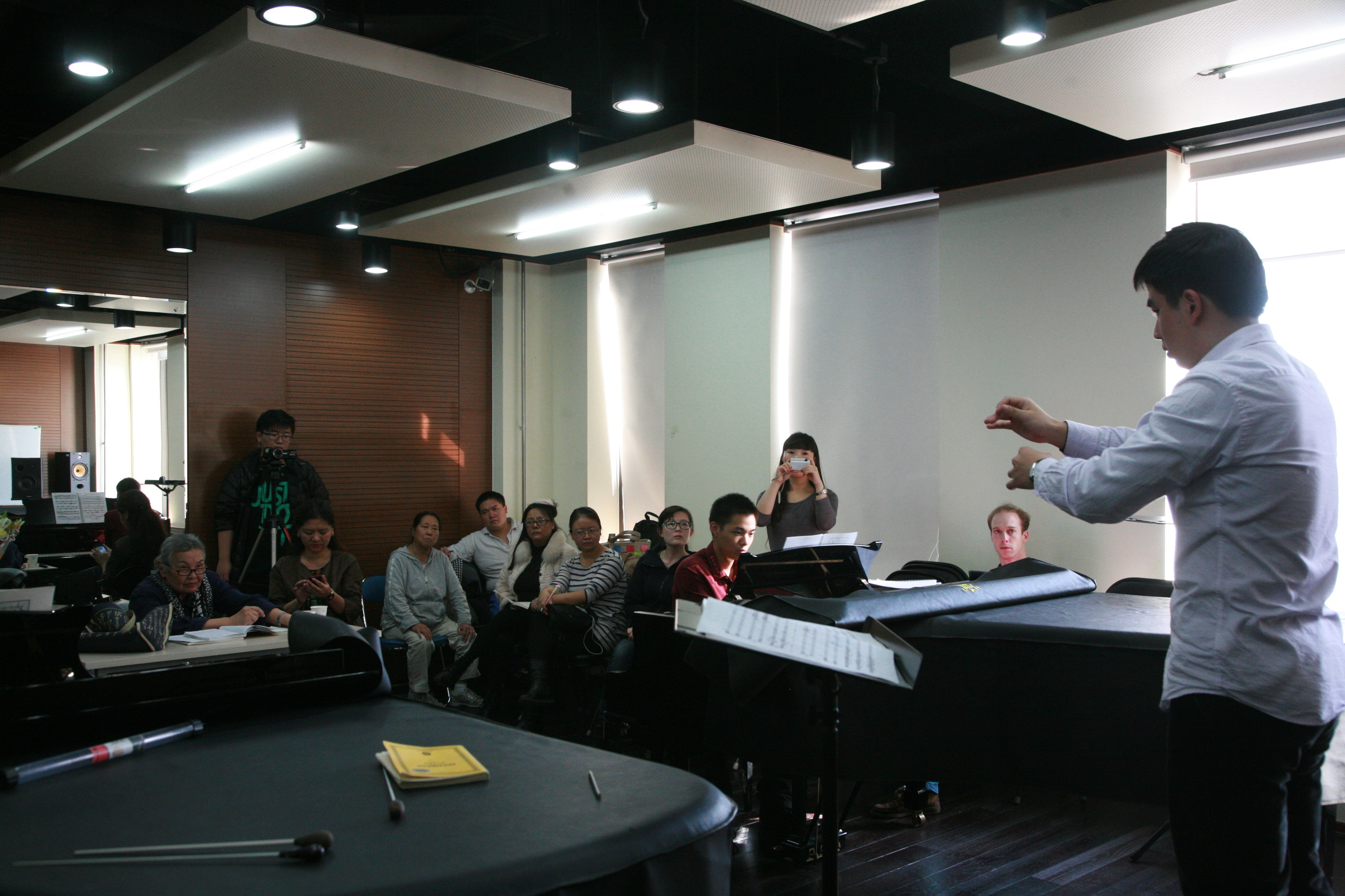 “我回来了!”这是郑老师此次公开课的第一句话,慈爱而熟悉的气息随之扑面而来,跟她上课的6位新一代指挥系的学生们豁然轻松,拘泥全无,每一位学生都发挥出了最好的水平。从贝多芬,到勃拉姆斯、柴柯夫斯基,再到斯特拉文斯基……郑老师为我们展示了资深指挥大师的过硬功底。她深情地回忆了自己留苏期间的学习经历,告诫同学们一定要有扎实的指挥基本功……郑老师的指挥大师课,点拨学生,直击要处,温和慈祥而又不失原则,令受教的每一位学生都所获甚丰。旁观者无不叹服钦佩。