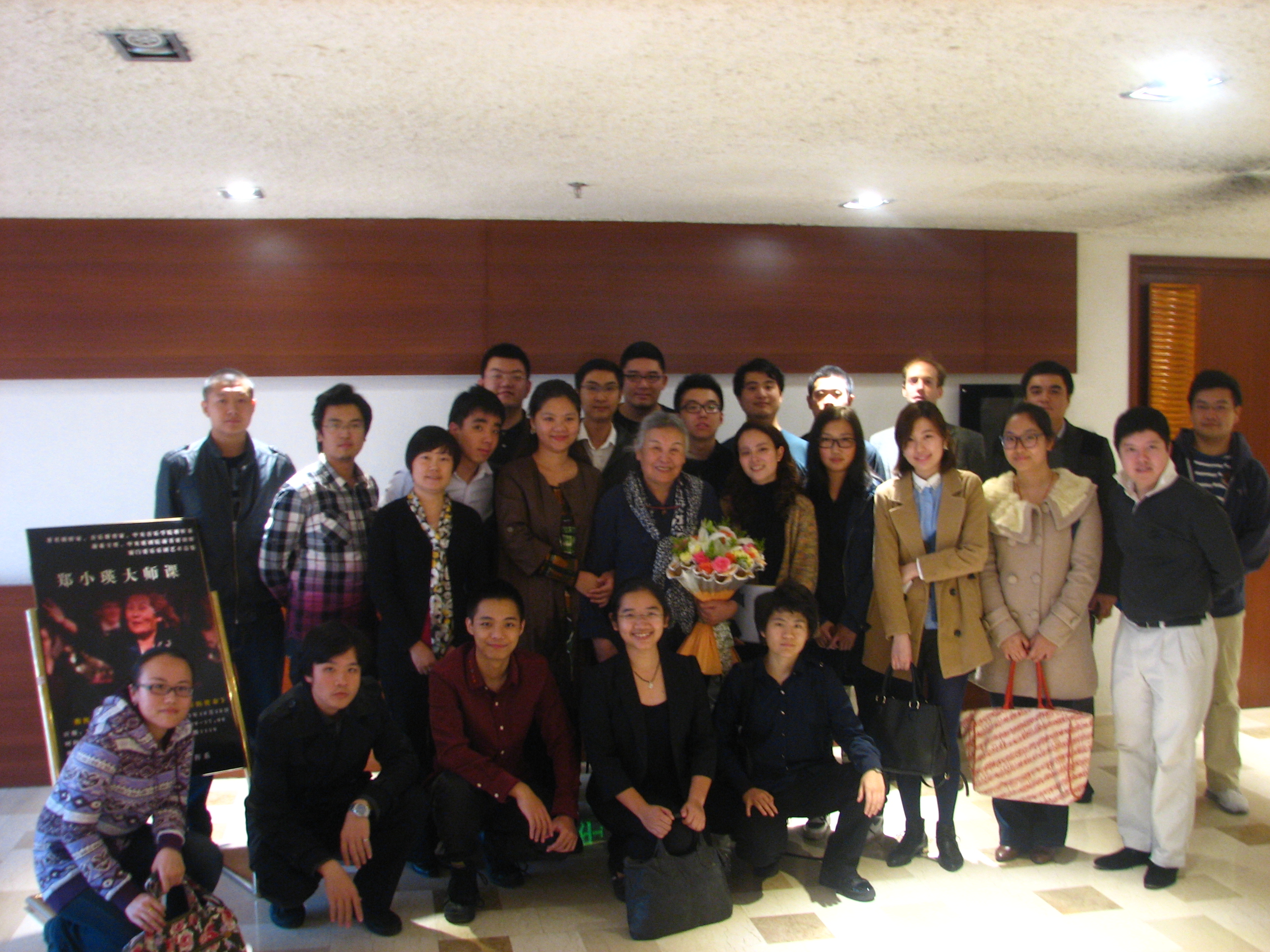 历时两个小时的专业大师课结束之后,年过八旬的郑老师毫无倦意,又兴致尤深地投入到讲座之中。讲座的题目是“指挥的使命”。这副老生常谈的题目被她讲得跌荡起伏、引人入胜。高龄老者有着常人所未有的传奇经历:她历经抗日救国的峰火岁月、建国跃进的豪迈激情、文革破“旧”的低靡社风、改革开放的稳步渐进……她50岁指挥歌剧《茶花女》、60岁组建爱乐女子室内乐团、70岁创办厦门爱乐乐团、80岁组建厦门工学院歌剧中心;她奉上了一场场空前绝伦的演出,她培养了一代代杰出音乐人才;她曾遇癌症威胁,却又奇迹重生;她曾遭乐团抵制,却又缔造了数个社团巅峰……如今她是令人仰慕的功臣与泰斗,在历经了无数的繁华与沉浮之后,升华的是人生的意境与追求。郑老师的讲座内容立足于“厦门爱乐乐团的创办与建设”,以其个人半生经历诠释着“使命”的崇高内涵——“成就是共同创造的,离开了演奏员的共同努力,指挥就等于零……‘阳春白雪,和者日众’,指挥的职责就是要尊重乐团成员,获得他们的信任与爱戴并以此唤起乐队与之共同创造音乐的热情……要以天下音乐发展为己任,不争指挥一己之得失,热爱祖国,不断提高人民音乐素养……这是作为指挥所应该终生追求的方向……”