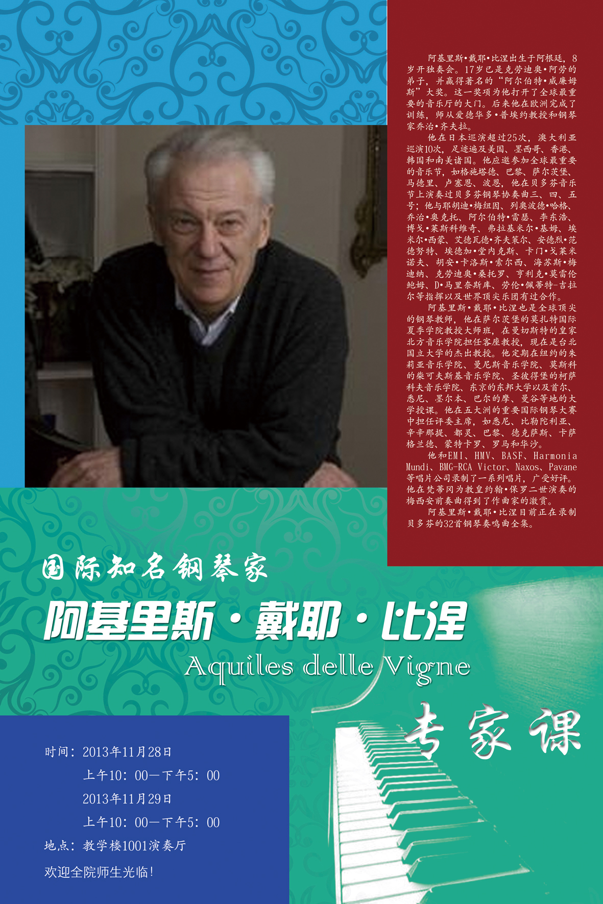 国际知名钢琴家阿吉雷・德拉・韦格纳钢琴专家课即将举行