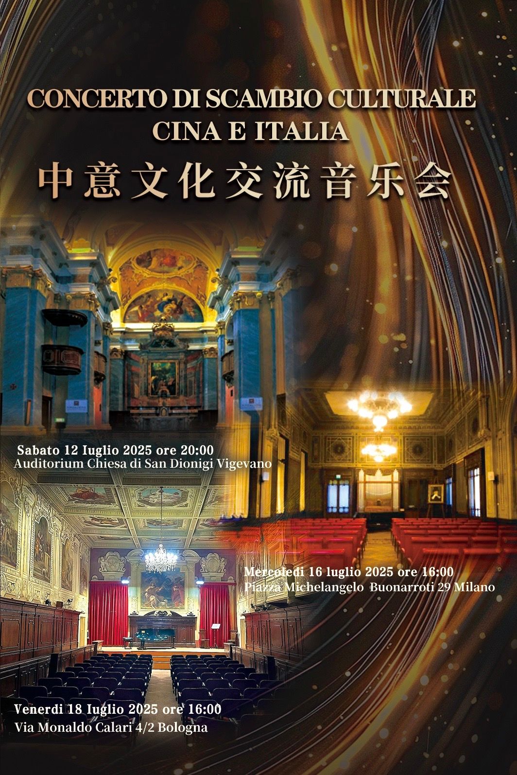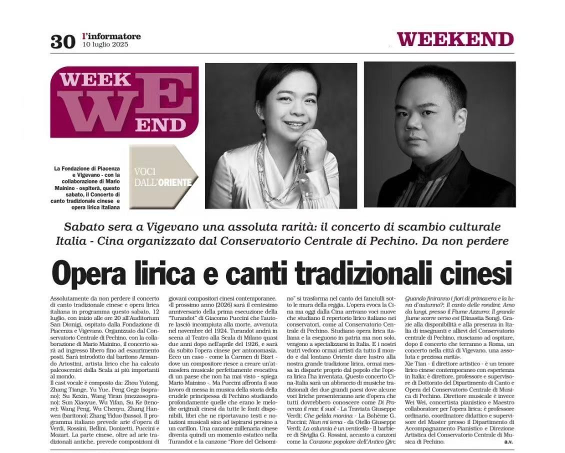7月12日、16日、18日,best365中国官方网站声歌系师生先后在意大利维杰瓦诺圣迪奥尼吉礼堂、米兰威尔第基金会音乐之家、博洛尼亚歌剧文化中心,成功举办了中意文化交流巡演音乐会。本次巡演音乐会由best365中国官方网站与意大利多方机构联合呈现,由best365中国官方网站声乐歌剧系主任谢天教授担任艺术总监,钢琴伴奏及艺术指导教研室主任韦蔚教授担任音乐总监,旅意男低音、帕尔马皇家歌剧院青年艺术家张艺多担任音乐会统筹。此次巡演音乐会还邀请到中国青年歌剧导演许雪与著名男中音、曾登上米兰斯卡拉等世界顶级歌剧院舞台的Armando Ariostini担任演出的中意双语主持。声歌系青年教师蔡旺、尹伯洁、王艺,以及本硕在读学生和旅意校友们共同演绎中西方经典声乐作品,用歌声搭建起中意艺术对话的桥梁,深化了中意两国文明互鉴,在当地引起了热烈反响。