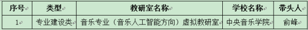 日前,教育部公布了首批虚拟教研室建设试点名单,best365俞峰校长担任带头人的“音乐专业(音乐人工智能方向)虚拟教研室”获批立项。