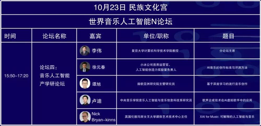 10月23日下午世界音乐人工智能大会论坛四:音乐人工智能产学研,在北京民族文化宫举办。