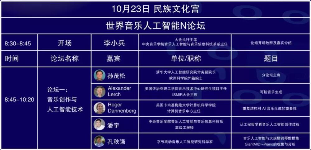 10月23日上午世界音乐人工智能大会论坛一:音乐创作与人工智能技术,在北京民族文化宫举办。