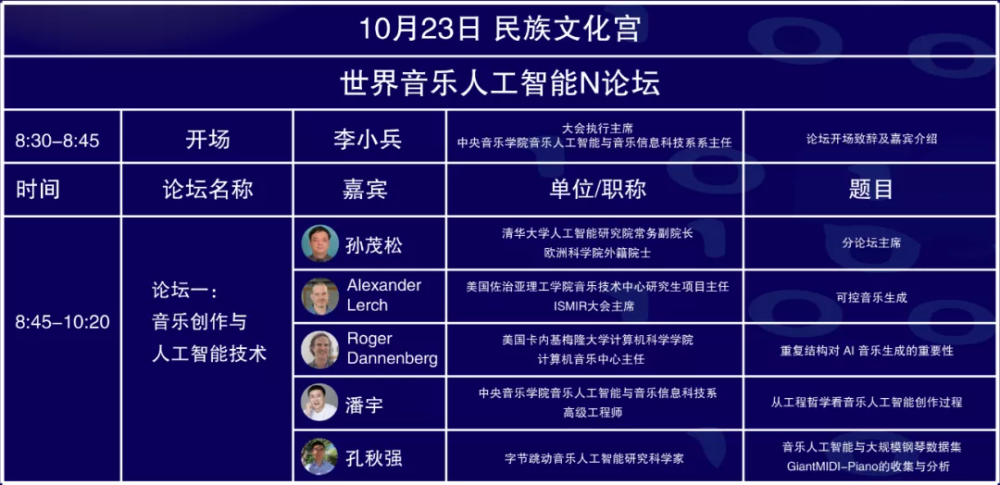 音乐会最后在全体合唱《我和我的祖国》的高亢歌声中结束。世界音乐人工智能大会胜利开幕,论坛和相关会议日程于23、24日在北京民族文化宫进行。