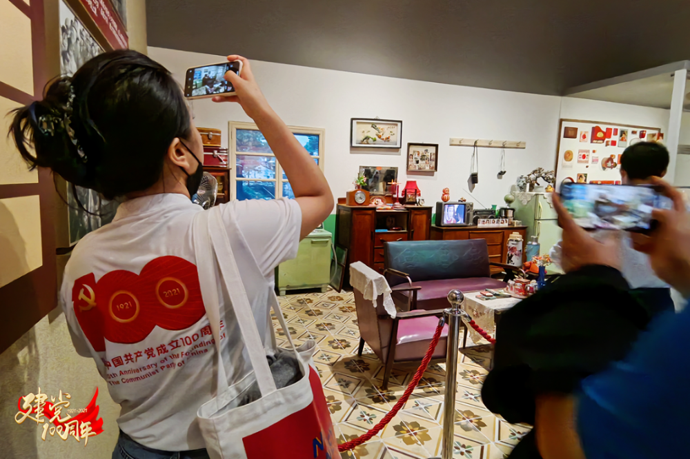 音乐人工智能系学生党员、博士一年级新生乔子千带着思考在展厅中流连,新时代的小康生活与父辈们艰苦奋斗的历程是她关注的焦点。展厅一隅还原了上世纪六七十年代的百姓家庭场景,对照今非昔比的生活品质,她激动地拿起手机,要跟家人分享。她感谢党史展览馆用这样的方式让自己理解长辈们的不易,同时也更加珍惜今天的生活。