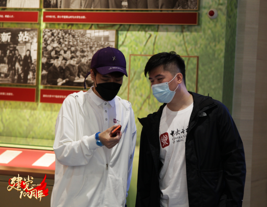 学生党支部宣传委员卓佳宾、党员刘韧边走边用手机记录参观心得,他们说,此次党史参观中艺术与科技的碰撞美,让自己感受到党百年奋斗历程中的思想伟力,并对未来的创作和研究都有所启发。