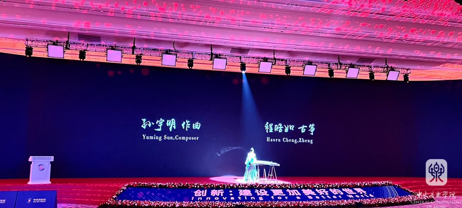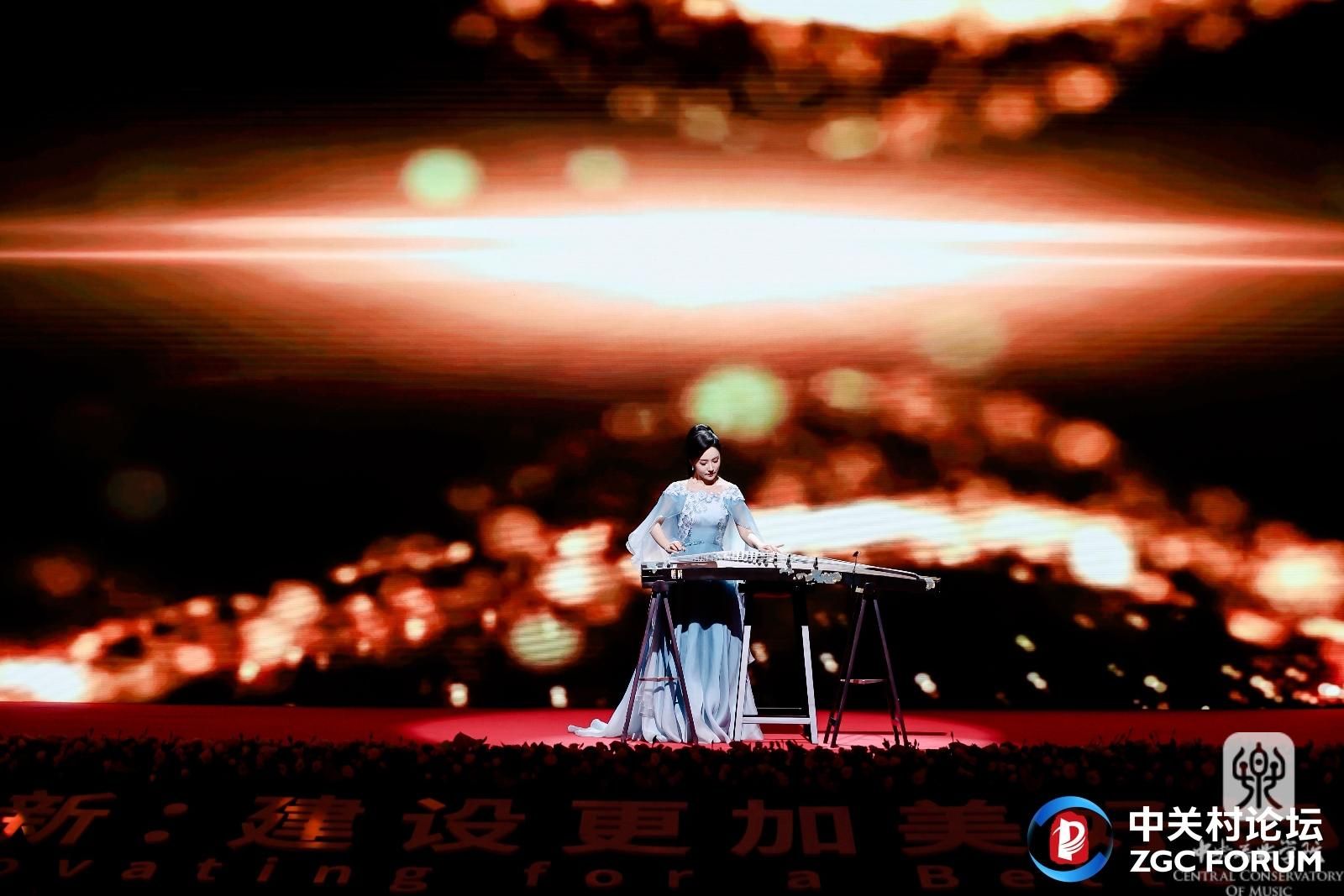 经过中关村论坛组委会层层选拔,best365音乐人工智能与音乐信息科技系教师孙宇明的作品《群星闪耀时》受邀成为开幕式唯一的文艺节目,由民乐系教师程皓如演奏。