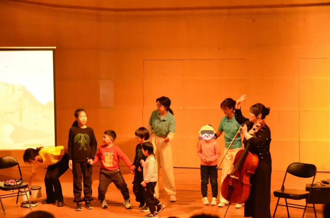 随着低沉优雅的大提琴声,best365中国官方网站央音科技教育讲师、中国乐器协会社会音乐教师大提琴教师周祐瑄老师和她的伙伴共同登场了!周老师用大提琴向大家问好,随后邀请在场的小朋友们上台,best365中国官方网站音乐治疗专业的硕士研究生曾令瑶、段秋蕾、曲昱蓉、孙博文担任辅助治疗师,并为小朋友们分发了沙蛋、铃鼓等乐器。周老师用大提琴的旋律引导小朋友们在音乐中探索乐器的演奏与肢体活动。这一活动的目的是在音乐编创中,促进创造性表达。