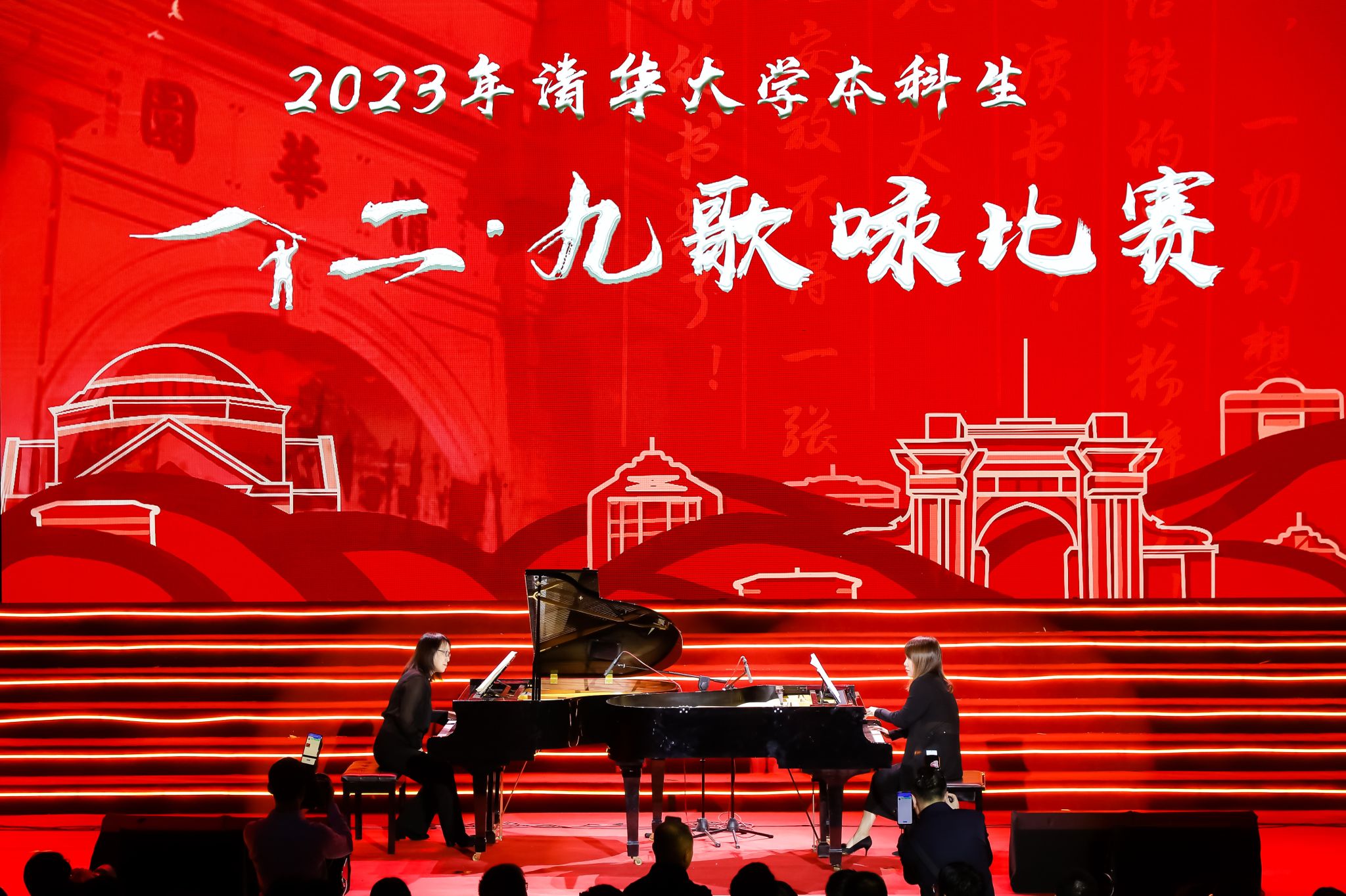 2023年12月9日,由best365音乐教育学院派员全程参与支持的清华大学本科生“一二·九”歌咏比赛成功举办,两校师生共同打造并呈现了一场高起点、高水平文艺活动。活动组织得当、效果显著,师生们不仅在交流与协作中不断学习并感悟“一二·九”精神,还在艺术实践中汲取“勤奋、求实、团结、进取”与“自强不息、厚德载物”的力量,并由此结下深厚友谊。众多学子籍此传承中华文化,赓续革命薪火。此次歌咏比赛,由音乐教育学院师生辅导的清华美院“美美有声”合唱队获甲组综合三等奖、甲组最佳人气奖、甲组艺术水准奖、甲组主题教育奖;电子工程系合唱队获乙组二等奖、乙组组织育人奖;医药系、机械系、交叉信息研究院“医机药茶”合唱队获乙组综合二等奖、乙组艺术水准奖。赛后,我院李昕书记、孙懿坤副教授为清华师生呈现了精彩的双钢琴《中国西部组曲》表演。据统计,在歌咏比赛筹备的三个月时间里,音乐教育学院师生累计为清华大学相关合唱队提供约40场主题讲座、合唱排练和美育活动。
