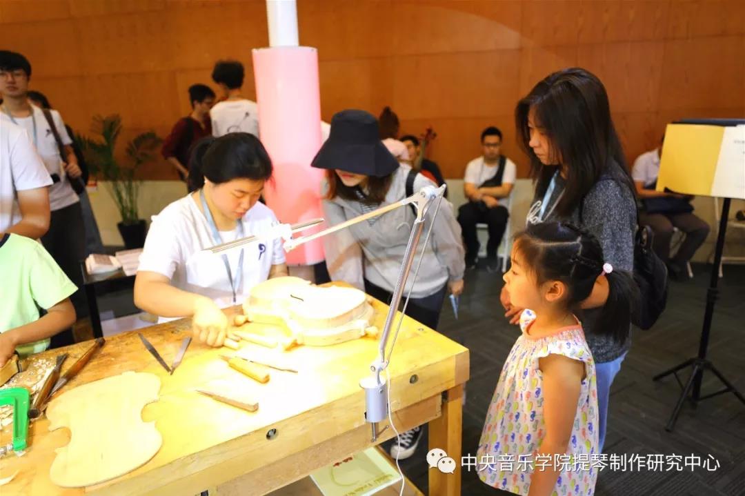 因为正逢周末,许多音乐爱好者和一些家长带着他们的孩子前来参观。活动期间,我系展位版块受到了广大观众的喜爱,各个区域都停留着观摩拍照的参观者,不论年龄大小,或是家长带着孩子,经过时都会在我系版块前驻足观看,对于提琴制作这门艺术充满了好奇心。