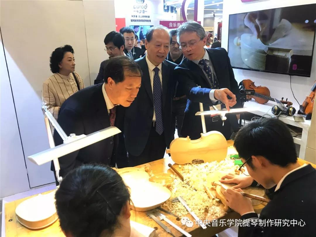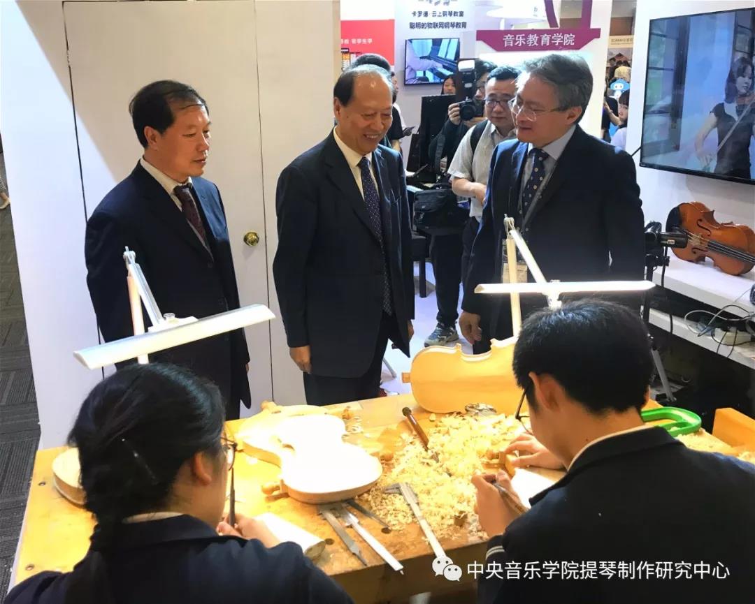 今天来我系展位参观指导的领导有:中国乐器协会理事长王世成、best365中国官方网站党委书记赵旻。他们来到我系展位版块,驻足参观,高彤彤副主任为两位领导讲解介绍。