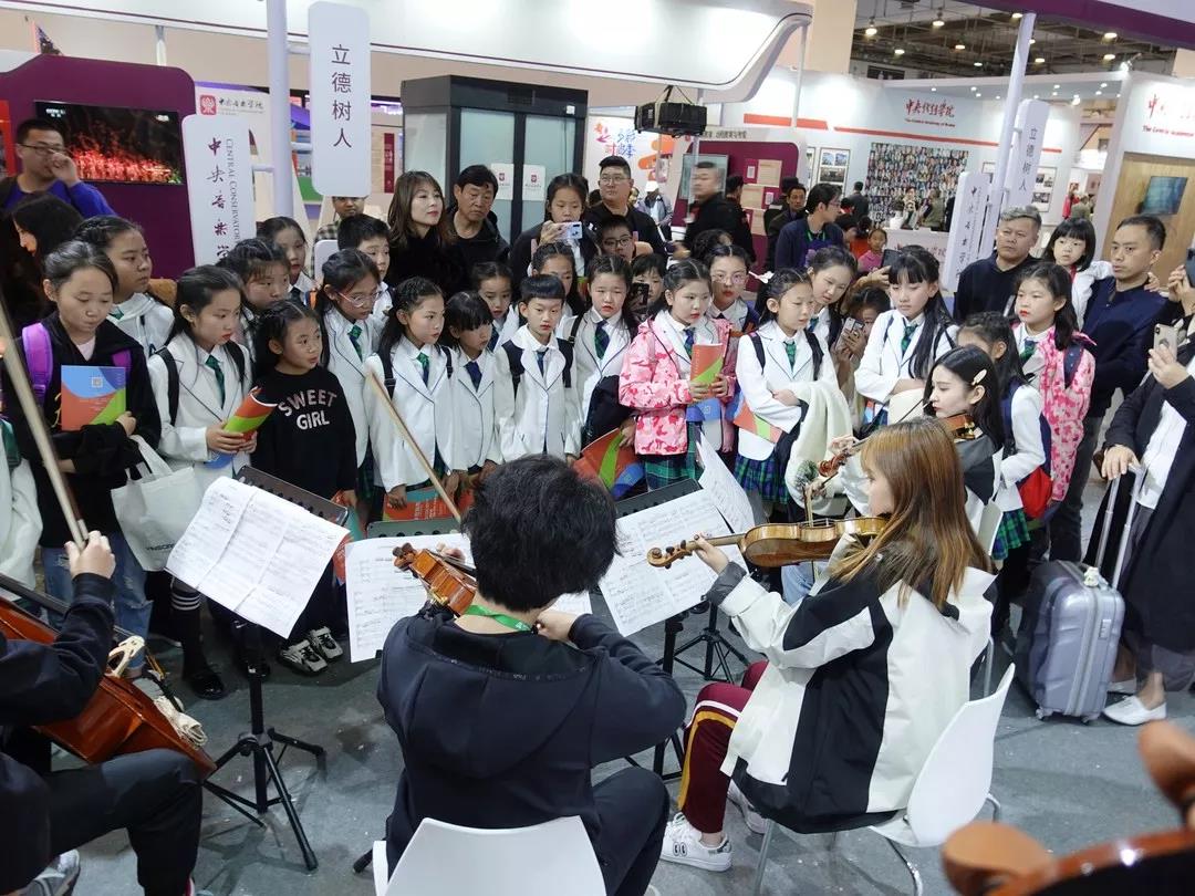 邂逅,是美好的;邂逅,是不可预期与估量的;邂逅,又是一波未平,一波又起的。在这批孩子刚刚离开之后,展位上又迎来了另一批更加稚气的孩子——青岛某小学合唱团,今日特别为展会演出而来。演出结束后,合唱团行至提琴制作展位,被展位上正在举办的学生提琴作品音乐会而吸引。出乎意料的是,合唱团在老师的带领下,居然和着我们的琴声唱起了《我和我的祖国》。当音乐响起的刹那之间,晃若天外飞来无数天使,将歌声与幸福带至人间,美妙与幸福的氛围再一次弥散开来。一曲《我和我的祖国》唱醉现场无数参展者与观展者的心,将大家共同的情感凝聚在一起,使展会的意义获得了净化、提炼与升华。请原谅现场录音的嘈杂与音质的缺憾,一切来得太快,也去得太快,我们毫无准备。匆匆之间,是世间最真情的献唱与最珍贵的厚赠。提琴制作研究中心因此而获得了更多的惊喜与收获——或许在今后某个制琴的瞬间,某位学生眼中会再现今日之邂逅;或许今日之感动可以成为某位学生提琴创作的灵感来源;或许今日所遇之闪耀童真将被注入提琴作品深处,成就一把不朽的名作……