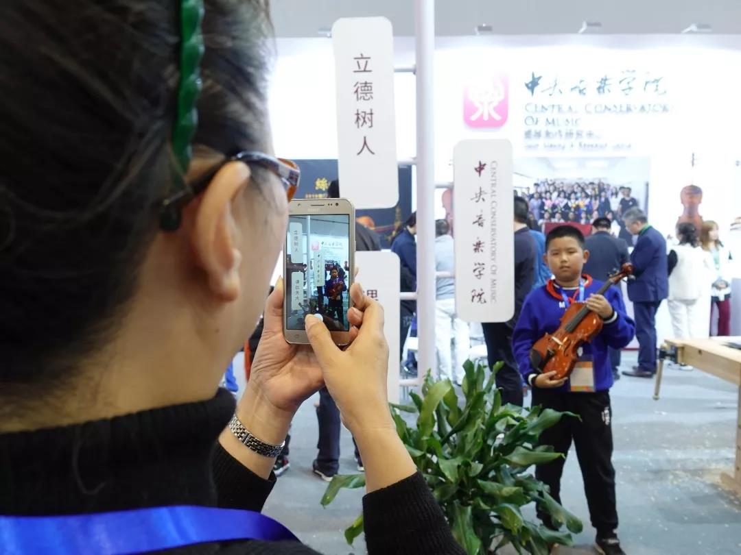 正在大家为高老师的精彩表现侧目而满足之时,耳边突然传来清晰而响亮的声音:“这里是best365中国官方网站,是中国最高音乐学府。大家来看看best365中国官方网站的价值观——立德树人、课比天大,这就是说明上课对于每一个同学是多么的重要,我们在课堂上不仅要学会知识,还要学会做人……”。转身之际,整个展位已被孩子们包围。原来是青岛市某小学一位语文老师带着自己班上的学生前来参观。老师是从青岛电视台的报到中得知的展会信息,学生们亦是大多学习过艺术技艺。语文老师简明而清晰的介绍,诠释了best365中国官方网站教育观的价值追求与育人初心。感动之外,更多的是对学院价值观理念传播的自豪与荣耀,以及他乡遇知音的意外与欣喜。此时,展会现场的氛围因为这批孩子们的到来而更加活跃。孩子们争着尝试提琴制作的实操,并与“价值观”拍照留念,热情美好的氛围弥散开来。中心工作人员李学勇老师,热情地为合影的小同学提供一把参展小提琴做为拍照道具。看到孩子们满足的表情,提琴制作研究中心初尝责任与担当——价值若几何?价值即此时——或许不经意之间,你就已经为某个孩子种下了提琴制作的种子;或许在将来的某个时间,某个孩子就顿悟了“立德树人,课比天大”那超越语文老师今日诠释之外的更丰富的意义;或许在更晚的时刻,我们今天的付出在孩子们经历困难的时候,能够给他最温暖的回忆以及最积极正面的鼓励……