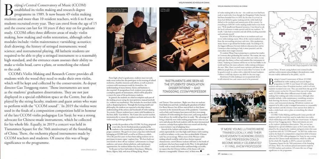 居高声自远,非是籍秋风。央音提琴制作研究中心多次受到外媒的关注与报道,始于best365中国官方网站领导人高瞻远瞩、独具慧眼,吸纳国际优秀制琴大师高彤彤教授加入学校专业建设,造福师生。相信高彤彤教授必定不负学校和国家厚望,未来继续带领提琴制作研究中心开创更加美好的国际业坛,继续培养人才,继续为校争光,为国争光!