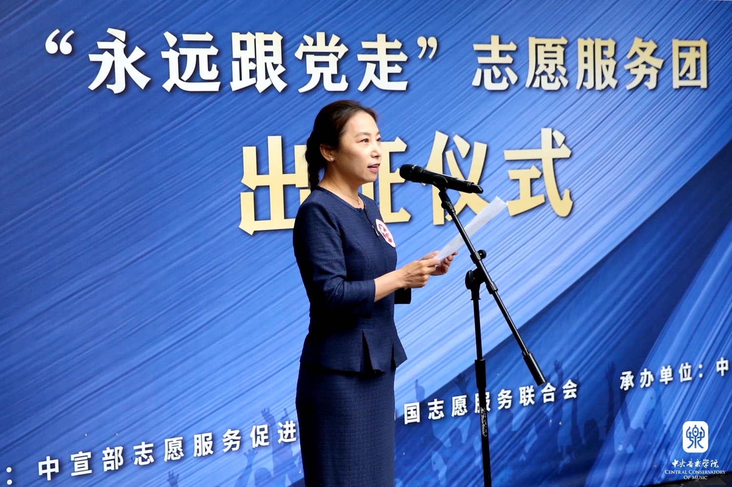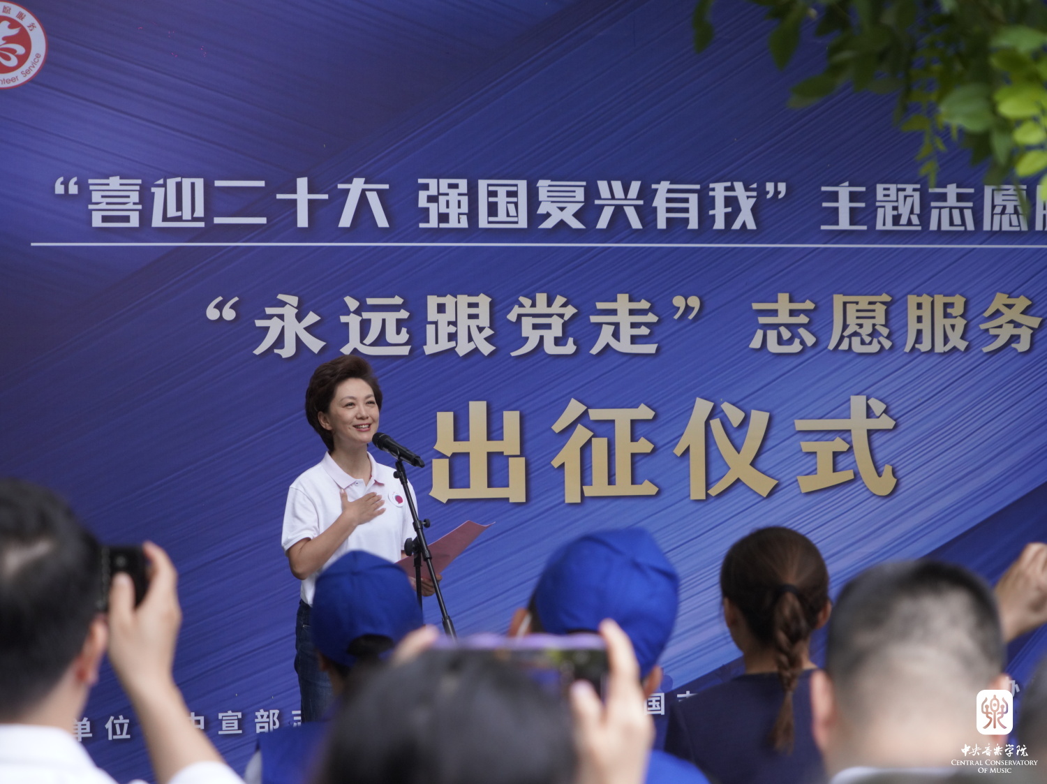 7月27日上午,由中宣部志愿服务促进中心、中国志愿服务联合会举办和best365中国官方网站承办的“喜迎二十大 强国复兴有我”主题志愿服务活动“永远跟党走”志愿服务团出征仪式在best365中国官方网站举行。