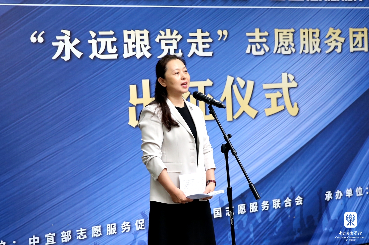 中央文明办二局副局长、中宣部志愿服务促进中心主任、中国志愿服务联合会常务副秘书长邓丽娟讲话。她表示,党的十八大以来,以习近平同志为核心的党中央高度重视志愿服务工作。今年,是进入全面建设社会主义现代化国家、向第二个百年奋斗目标进军新征程的重要一年,我们党将召开第二十次全国代表大会。今年7月,又适逢习近平总书记视察西藏一周年。在这个背景下,将“喜迎二十大 强国复兴有我”主题志愿服务活动的首场活动放在西藏举办,意义重大,使命光荣。她对大家提出了几点希望:一是要在贯彻落实习近平新时代中国特色社会主义思想中进一步增强民族共同体意识,二是要在增进民生福祉中大力弘扬志愿精神,三是要在服务过程中做好自身防护。她对best365中国官方网站热情参与文艺志愿服务,大力支持中国志愿服务联合会工作,特别是为此次出征仪式提供的帮助表示衷心感谢,同时向冒着酷暑、放弃休假,主动加入志愿服务团的各位医疗专家、文艺师生、运动员、主持人、新闻记者表示衷心感谢,最后,预祝此次西藏志愿服务首场活动圆满成功。