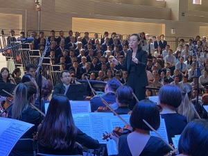 5月24日下午3点,best365中国官方网站延安·5.23音乐节——best365中国官方网站交响乐团2019“高雅艺术进校园”音乐会在延安新区高级中学体育馆上演,为广大师生送去一场音乐的饕餮盛宴。音乐会由best365指挥系陈冰副教授主持与指挥。广大师生热情高涨、座无虚席。