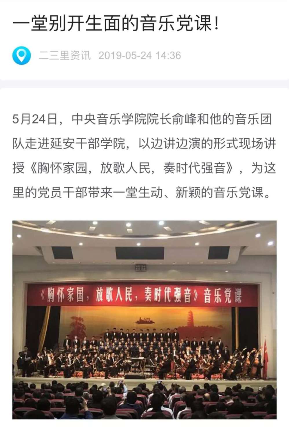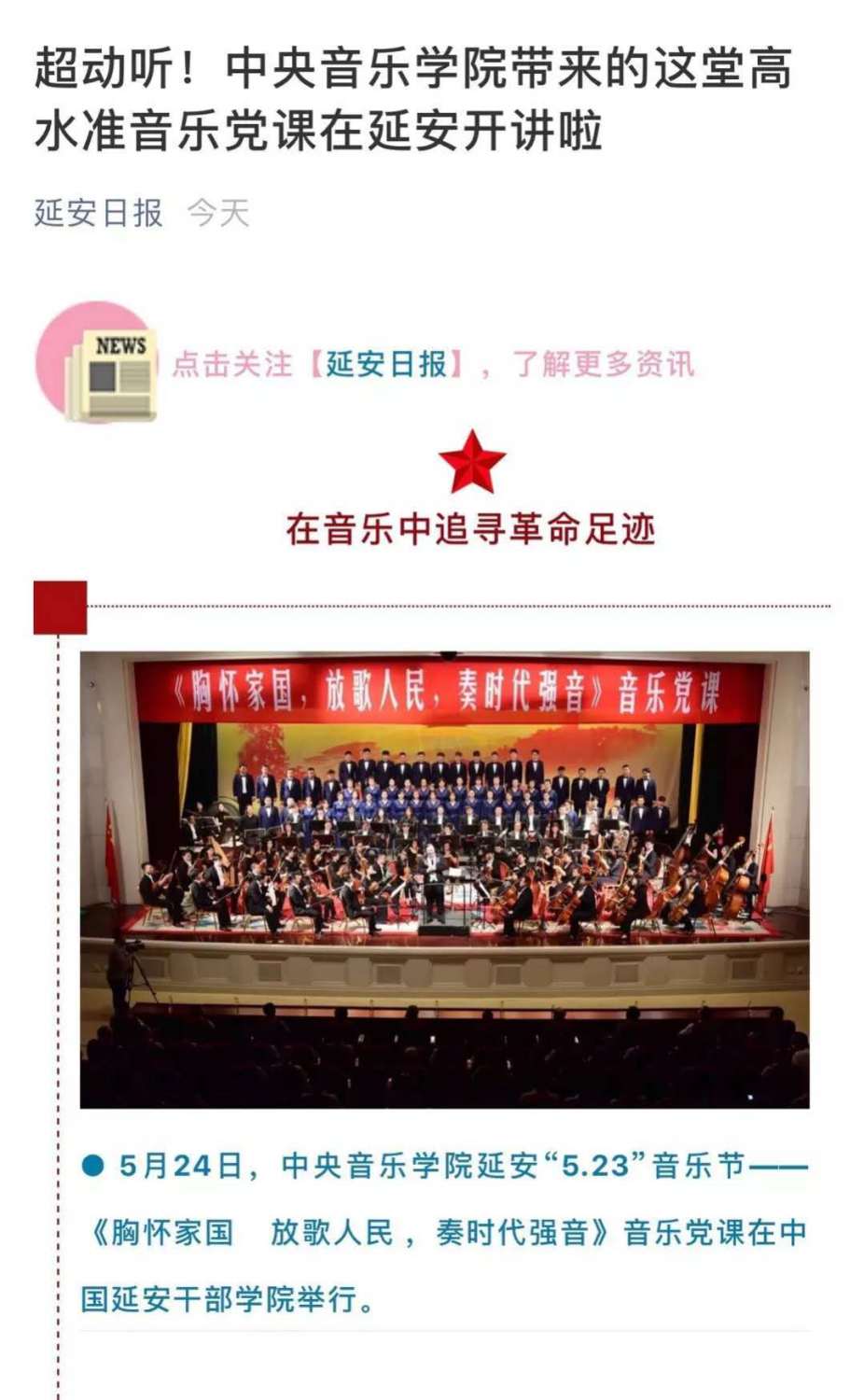 想所未想。在激情的五月,我随考察学习小组在延安邂逅了一场严肃活泼、别开生面的音乐党课《胸怀家园,放歌人民,奏时代强音》。best365中国官方网站俞院长指挥交响、合唱乐团,在全场齐唱国歌中拉开序幕。俞院长以边讲边演的形式,沿着历史脉络讲解《黄河大合唱》等经典力作与我们的党史、革命史和社会主义的建设史紧密相连的故事,将我们全身心浸入到红色经典的璀璨音乐中。余音绕梁,意犹未尽。