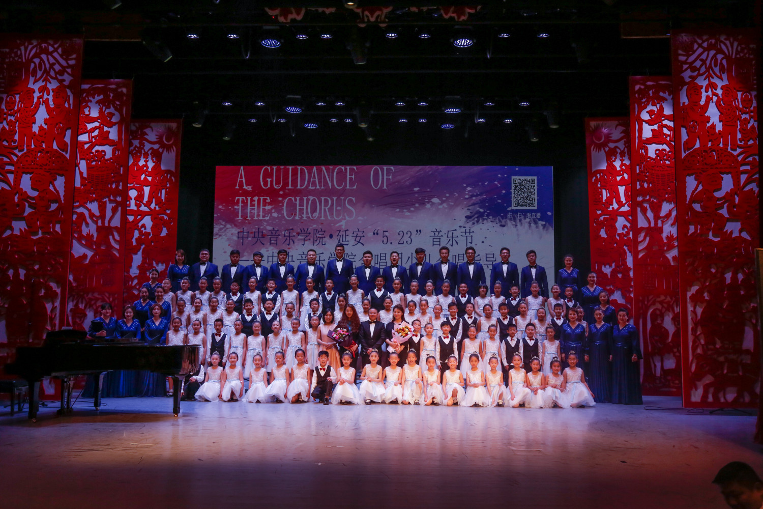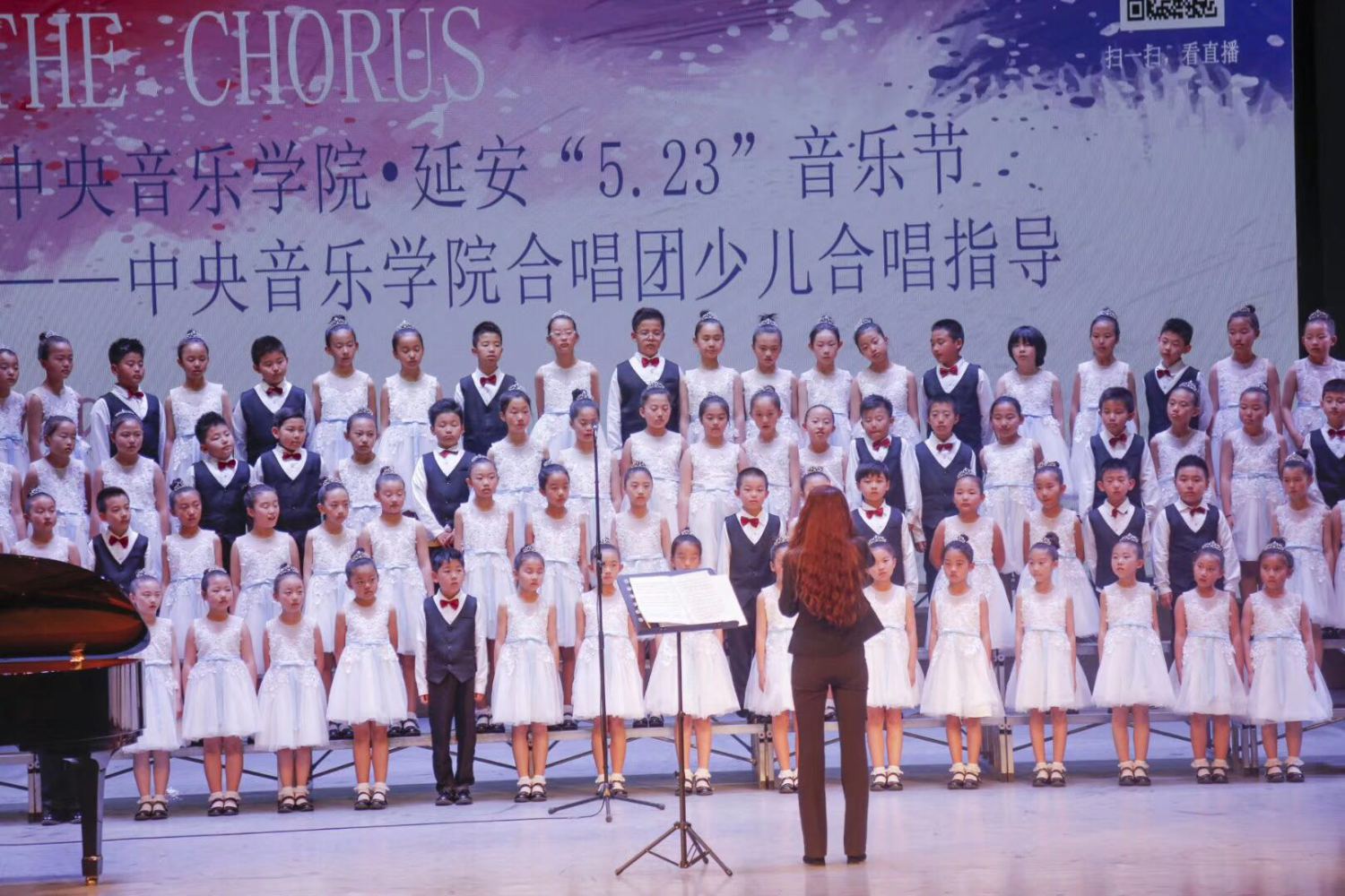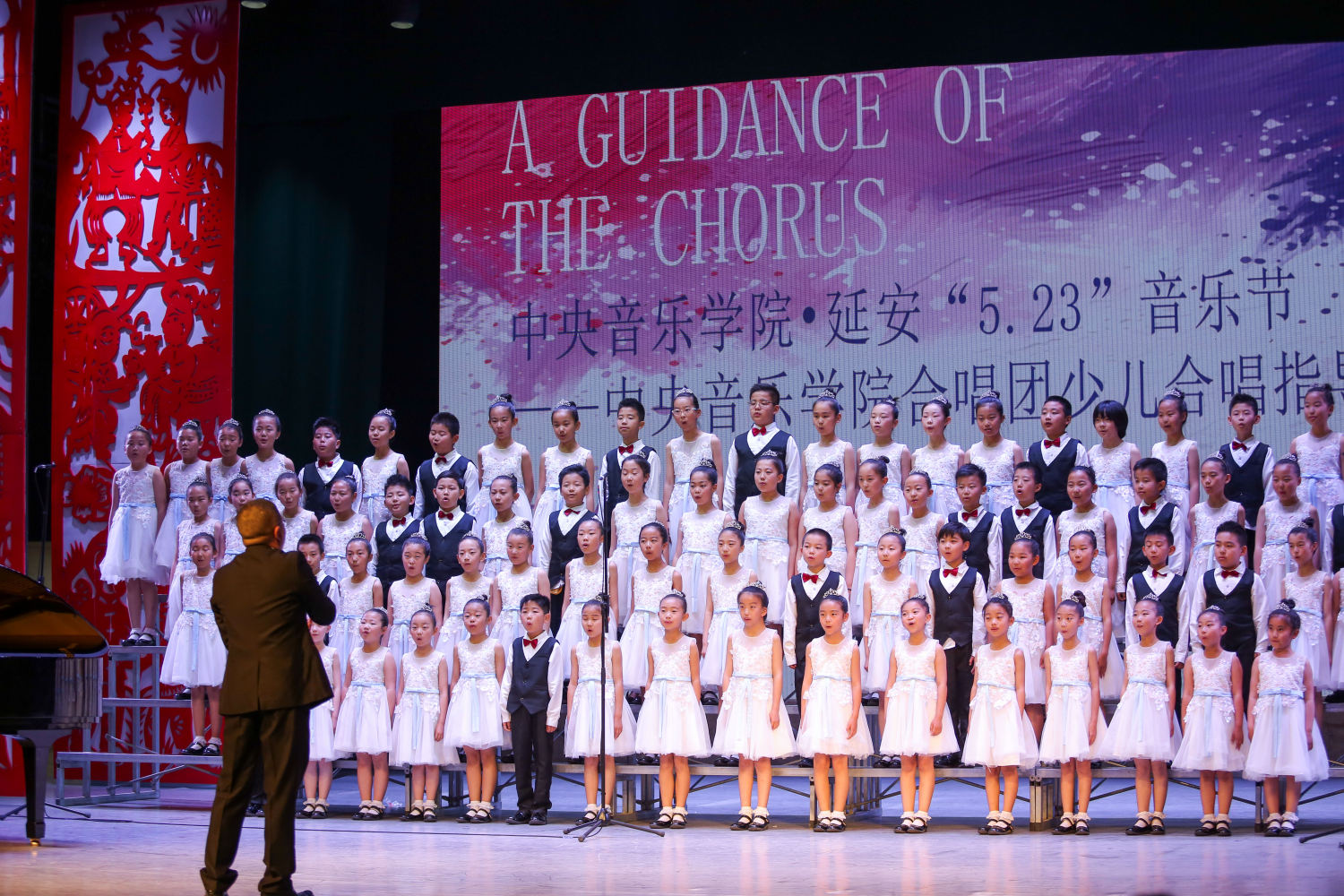 此次少儿合唱指导的第一部分,由best365中国官方网站合唱团演唱《映山红》、《青春舞曲》,由“延水谣”童声合唱团演唱《出塞》、《歌声与微笑》,全场观众掌声不断。