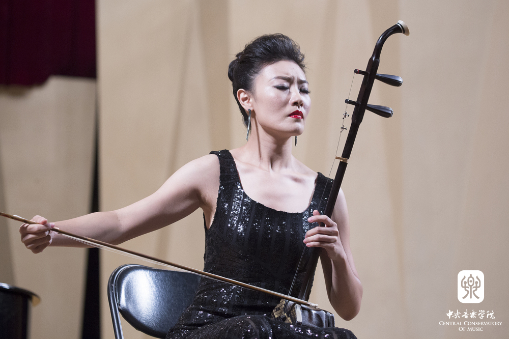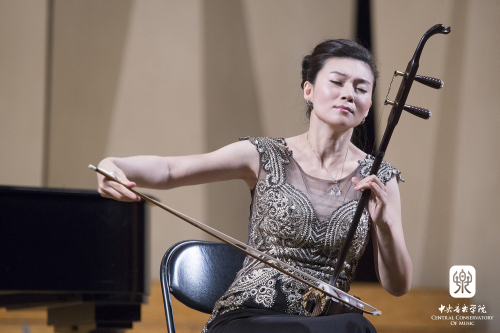 本场音乐会共演奏十首曲目,皆由民乐系优秀教师倾情演绎。音乐会上半场在田再励教授的一曲《寒春风曲》中奏响。此曲由华彦钧创作,作为《二泉映月》的姐妹篇,有着华彦钧特有的悲凉风格。在田再励演绎下,旋律刚劲明朗,色彩多变,耐人寻味。接着由赵寒阳教授创作并演奏的《乡音》,带来了不一样的音乐画面,全曲由扬琴伴奏,其中运用了大滑音和揉弦技法,乐曲风味浓郁、意境深邃,表达了游子在重返故里的激动心情。由李永志、李恒改编、陈哲钢琴编配,青年教师胡穆楠演奏的《中州韵》一曲,气势恢宏的旋律将板胡音乐的表现力发挥的淋漓尽致。姜建华教授对《二泉映月》饱含深情,极具表现力的演绎,为此曲注入了新的生命力。由我院教师薛克(二胡)、朱江波(二胡)、叶强(特邀)、魏然(打击乐)合作演奏的《行街》,再现了江南丝竹中轻盈优美,热烈欢快的音乐画面。