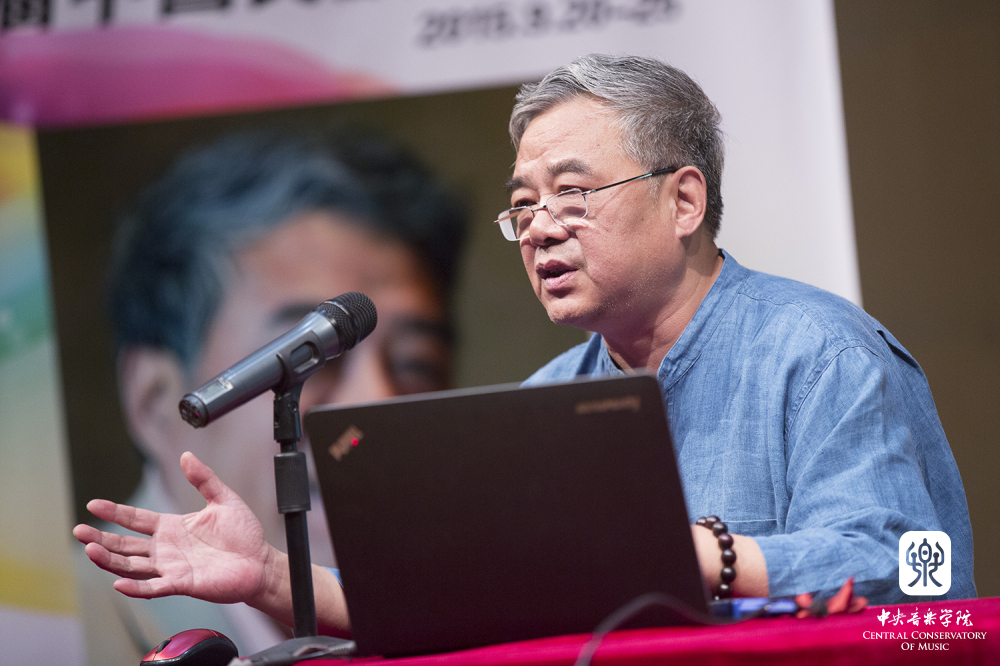 周老师先从自己的艺术简历谈起,提及希望明年退休后可以作为一个自由的音乐人更加纯粹的为音乐和艺术付出,并且也借此次机会为自己之前的创作经历进行总结。本场讲座的主标题定位“乐由心韵,尚雅国风”八个字,是周老师对自己创作生涯的提炼和阶段性总结,“乐由音韵”是一以贯之的创作理念,“尚雅国风”则是始终追求的创作风格。
