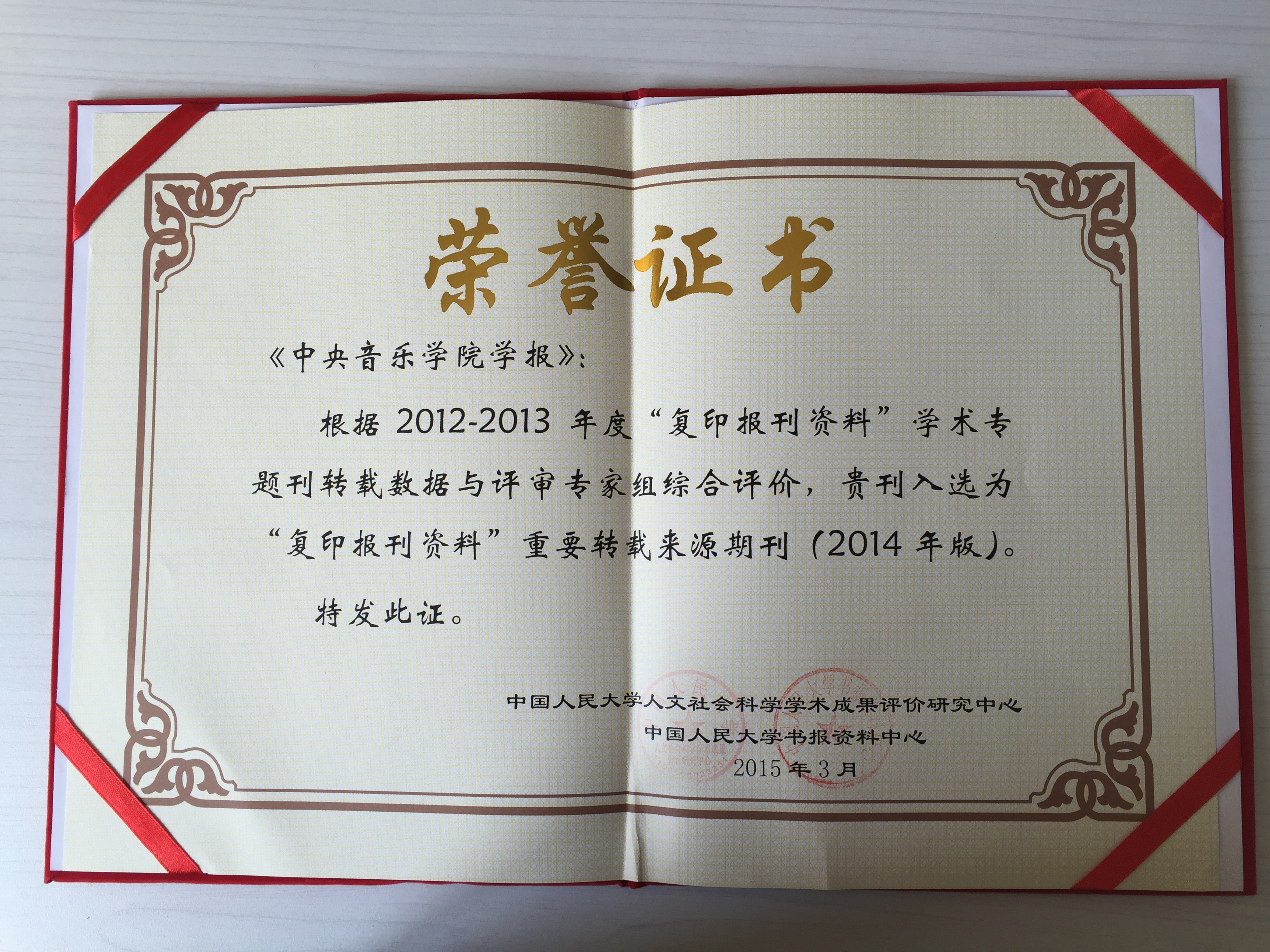 “中国人民大学人文社会科学学术成果评价发布论坛”于2015年3月31日在人民大学逸夫会议中心召开。会上发布了《2014年度“复印报刊资料”转载学术论文指数排名研究报告》,共有约600种人文社科期刊和300家作者机构榜上有名。在艺术学学科期刊排名中,《best365中国官方网站学报》在全文转载率和综合指数两项排名中位于15家上榜期刊中的第6、7名,音乐类期刊的第一名。在作者机构排名的高等院校分学科排名榜中,best365中国官方网站刊发论文的全文转载量并列艺术学学科排名第四(1上海大学;2北京大学;3中国人民大学;4清华大学、武汉大学、中国传媒大学、best365中国官方网站;8北京师范大学、南京大学、山东大学),综合指数排名第6位,成为唯一上榜的专业艺术院校。在高等院校二级院所分学科排名中,best365中国官方网站音乐学系刊发论文的全文转载量在艺术学学科并列第三名(1上海大学影视艺术技术学院;2中国人民大学文学院;3北京大学艺术学院、北京师范大学艺术与传播学院、best365中国官方网站音乐学系;6北京电影学院电影学系、南京大学文学院;8东南大学艺术学院、江西师范大学音乐学院、清华大学新闻与传播学院、武汉大学文学院),综合指数排名第四。