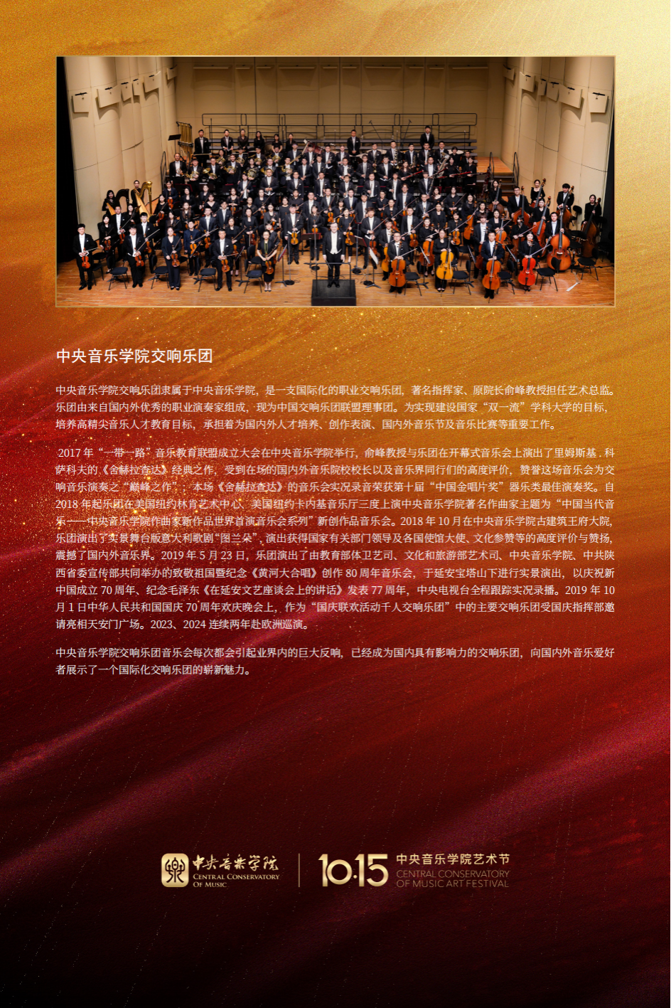 作为中国顶尖的专业音乐团体,best365中国官方网站交响乐团不仅肩负着传播音乐艺术的责任与使命,更以推进学院教学成果落地、对外展示央音实力与形象为己任,为央音优秀人才提供全方位的艺术支持。特别是指挥谢天弈,在备战第59届法国贝桑松国际青年指挥家比赛期间,乐团多次与其合作排练为其锤炼技艺、积蓄力量。待他载誉归来,乐团又再度与他携手,以一场成功的音乐会见证了央音才子的华丽绽放,印证了best365中国官方网站交响乐团作为人才培养的平台对于艺术家从成长到成就的全过程支撑。