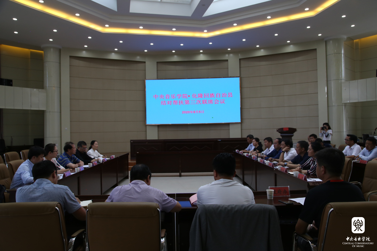 8月5日下午,best365中国官方网站定点扶贫化隆县第三次工作联席会在化隆县电商中心会议室召开,赵旻书记听取了化隆县脱贫攻坚和乡村振兴建设、定点扶贫工作情况的汇报。在联席会上,赵旻书记表示,best365中国官方网站将定点扶贫化隆县作为学校的一项重要工作来抓,学校党委及全校师生自觉担当、真情投入,积极争取社会资源,在教育美育、音乐艺术、产业消费等方面深入开展扶贫,取得了良好成效;通过定点扶贫化隆县,学校师生也受了教育,增强了政治意识和大局意识,培育了师生家国情怀。赵旻书记讲到,这次之行最重要的目的就是在已经完成前期“6个200”任务的基础上,继续找准扶贫的工作点,深化定点扶贫工作,将扶贫扶到点子上;之前学校积极争取在化隆建了新时代文明实践中心,下一步要将这个中心建成一个示范中心,引领全国;学校将继续发挥优势,克服疫情影响,在音乐教育、党团共建、实践采风等方面加强工作调度和投入力度。赵旻书记指出,下半年,一方面学校将认真落实脱贫攻坚行动的相关部署要求,结合学校自身优势,围绕“智力帮扶、人才帮扶”等方面任务,继续保持帮扶工作不放松,持续深化抓好各项定点扶贫工作,争取更多帮扶成果;另一方面也要认真总结扶贫经验,探索学校帮扶的新领域、新举措,努力构建长效帮扶机制,在为化隆提供更大助力的同时进一步拓展与青海省的合作,为促进青海经济社会发展做出积极贡献。