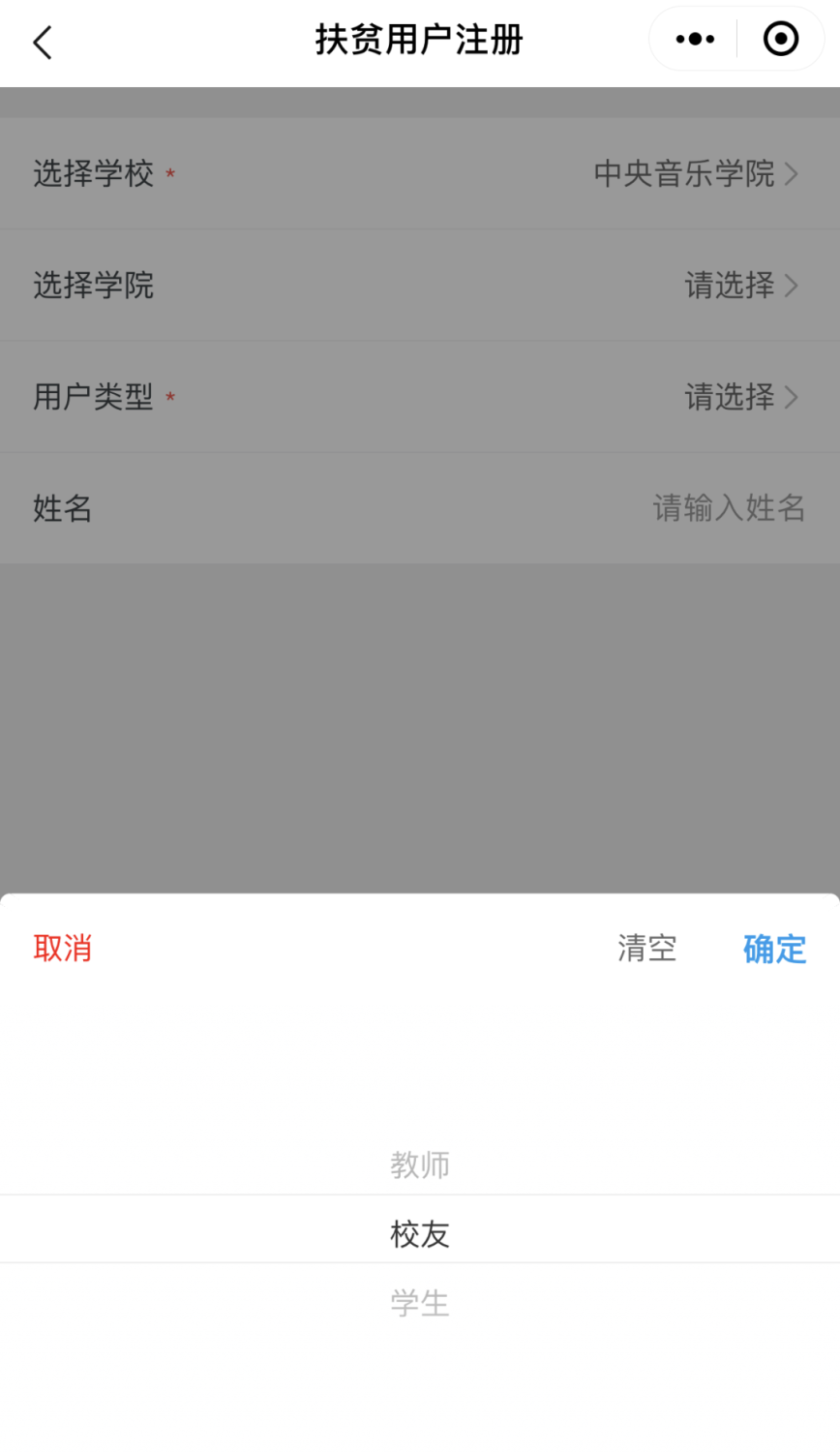 第五步:点击“用户类型”,根据自己实际身份选择;点击“学校名称”,选择best365中国官方网站;输入“姓名”后,点击“提交”,至此身份绑定完成。