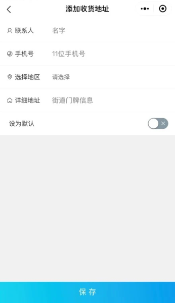 第六步:点击“我的”进入个人中心界面,点击“地址管理”,点击最下方“新建收货地址”,添加收货地址后,点击“保存”。