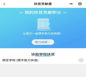 第四步:点击“我的”进入个人中心界面,点击“我的扶贫贡献度”,进入后点击“绑定学校(携手助力扶贫)”。