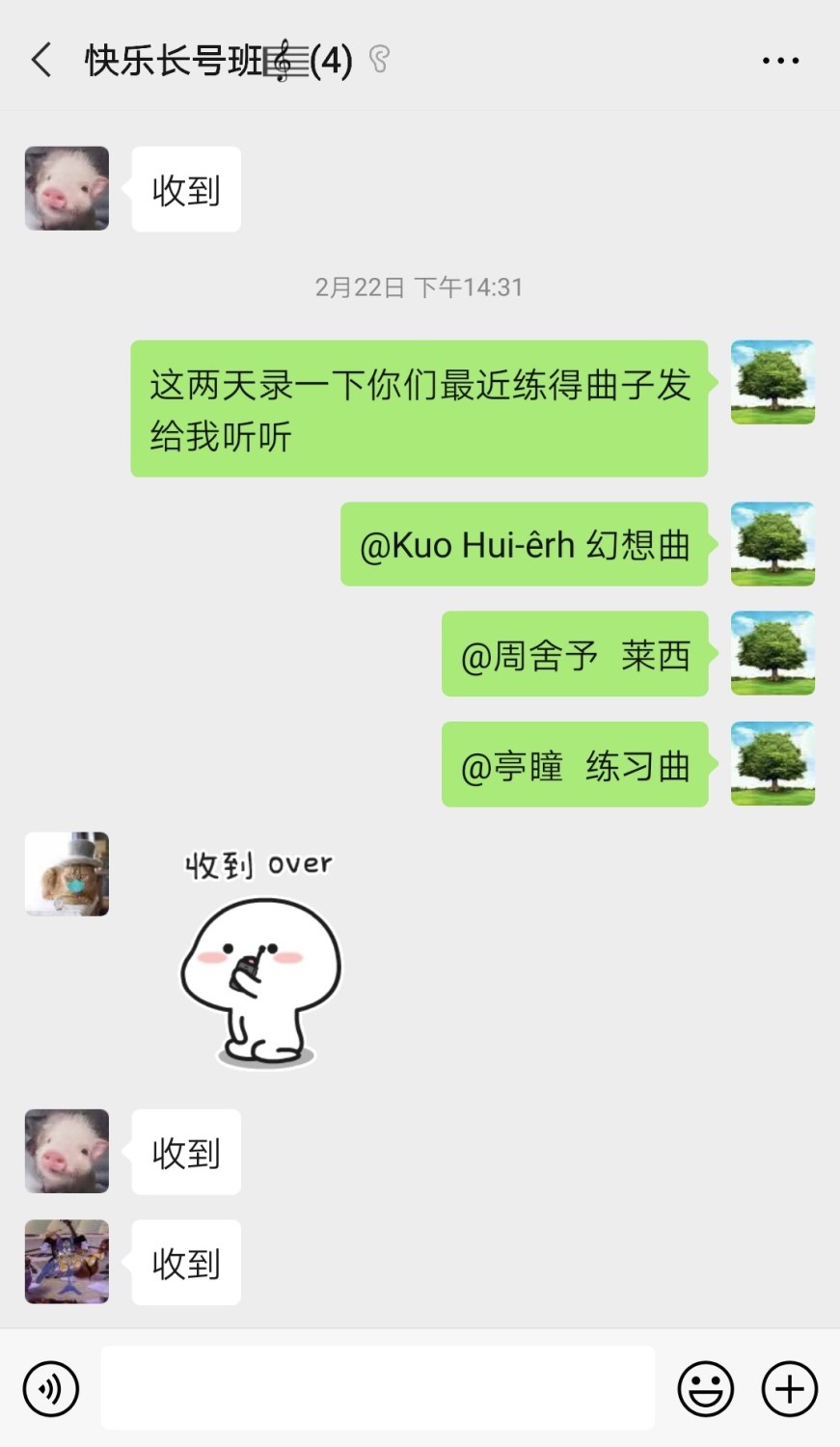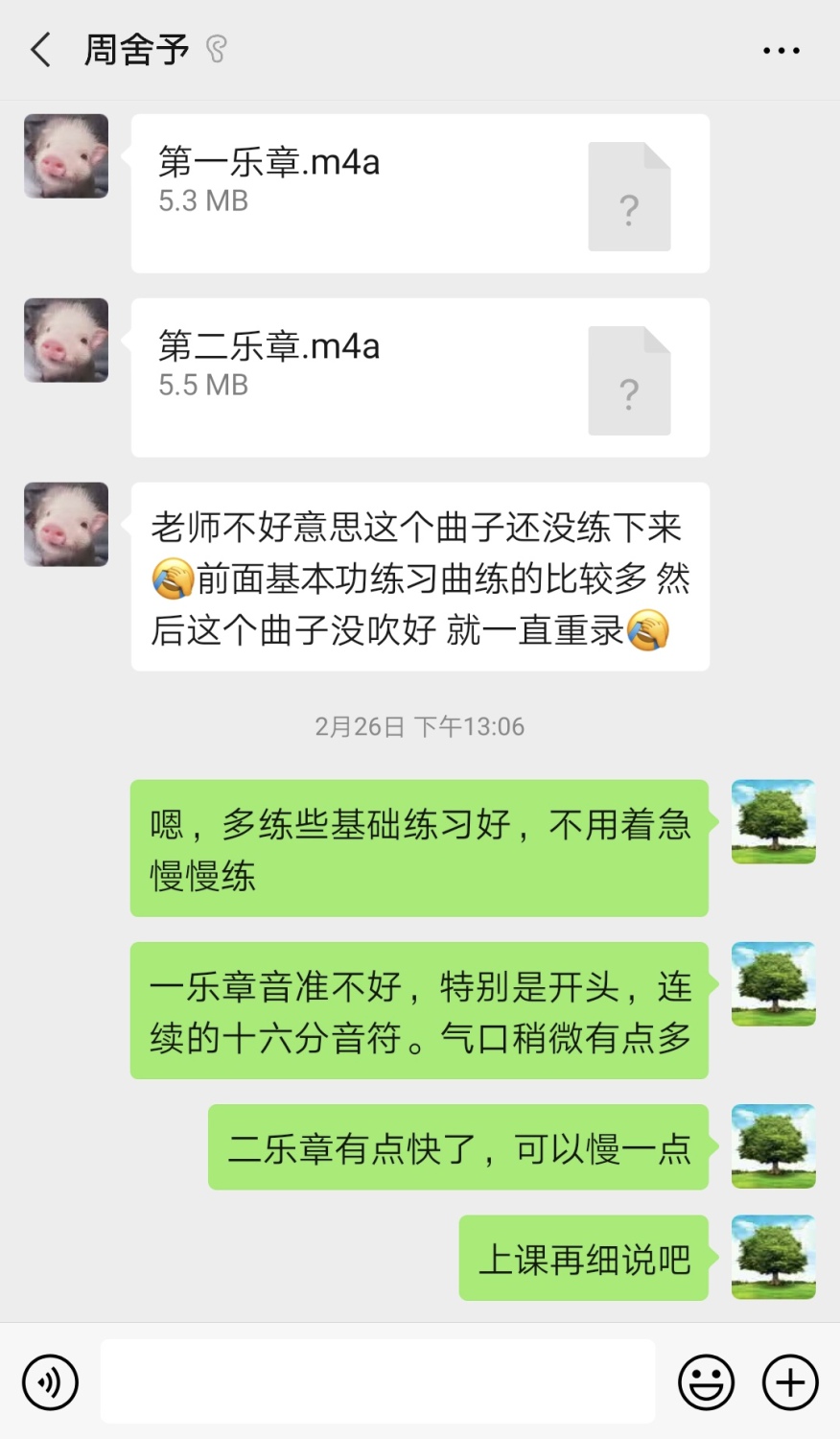 倪伟:在平时重奏的练习中,都是一人一个声部,各自练习好分谱,大家再合一块排练。因为疫情居家,所以我自己练习重奏的时候自己承担了所有声部的演奏,在练习和录制的过程中我收获很多。平时我基本是演奏高音声部,很少接触中低音声部。这次的练习和录制让我很明确地体会到了中低音声部的重要性。中低音声部往往是重奏和声的主体,也起到烘托和伴奏的作用,对音准和声音的平衡要求非常高。因为不是旋律声部也很容易出现音准问题。怎么可以做到完美的声音平衡、力度的把握也是很困难的。通过演奏中低音声部我也更能体会到高音声部应该在什么情况下去做更好的引领。更明确,清晰的给出力度,气口,乐句线条等。所以我建议同学们在重奏中也多多去了解除自己声部以外的别的声部,这样你也知道自己在演奏的时候别的声部发生了什么,对整体会有很大的帮助。重奏是一切大型演奏形式的基础,所以大家要重视重奏。练习重奏可以加强和声、音准、节奏、音乐性、团队合奏意识、等等等等……等疫情过去,大家叫上三五好友重奏玩起来吧,既提高自己的专业水准,也是一个好的娱乐项目。俗话说得好:“三人行,必有我师。” 在平时重奏的练习中,你也可以从你身边的伙伴中学习到很多。居家的日子,大家也可以和我一样,自己和自己练练重奏,也不为是一个很好的方法。
