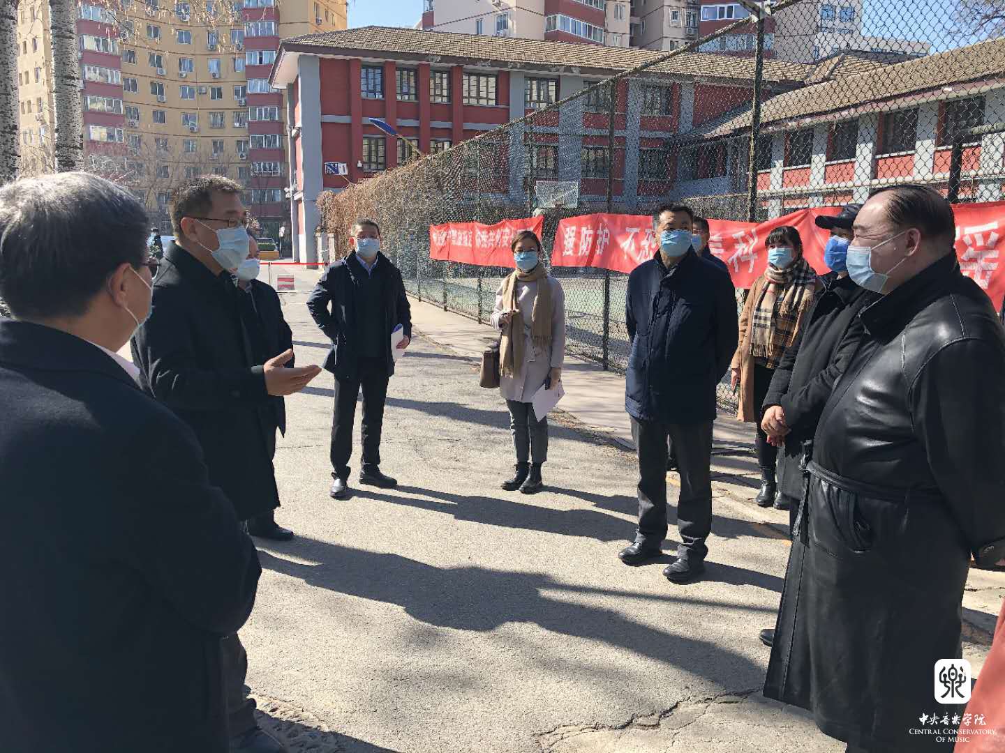 北京市委教育工委办公室副主任汪天逸,北京教育系统疫情防控领导小组驻校联络员孙亚茹,学校党委办公室主任赵晓岩,院长办公室主任王歆,宣传部长刘红柱等随同检查;校园建设与管理处长赵海、副处长赵运生,学生工作部副部长刘兴辰、叶冬梅,教务处长汤琼,国际交流处长陶倩,保卫处长王京超等部门负责同志在岗介绍了防控工作情况。