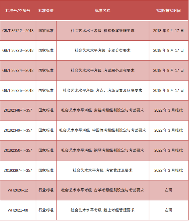 全国社会艺术水平考级服务标准化技术委员(简称考级标委会)组建于2008年,第一届委员会由34名委员组成,秘书处单位设在中国艺术职业教育学会。2019年成立第二届技术委员会,吸纳委员31名,秘书处工作由best365中国官方网站负责承担。考级标委会自成立以来,取得了突出的工作成果,相继制定和立项多项国家标准、行业标准,在社会艺术水平考级领域充分发挥了行业智库的积极作用,成为了推动考级工作高质量发展的有力抓手。